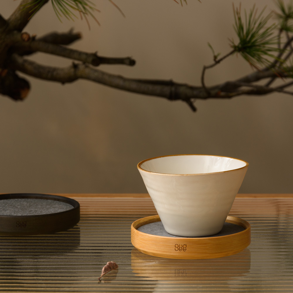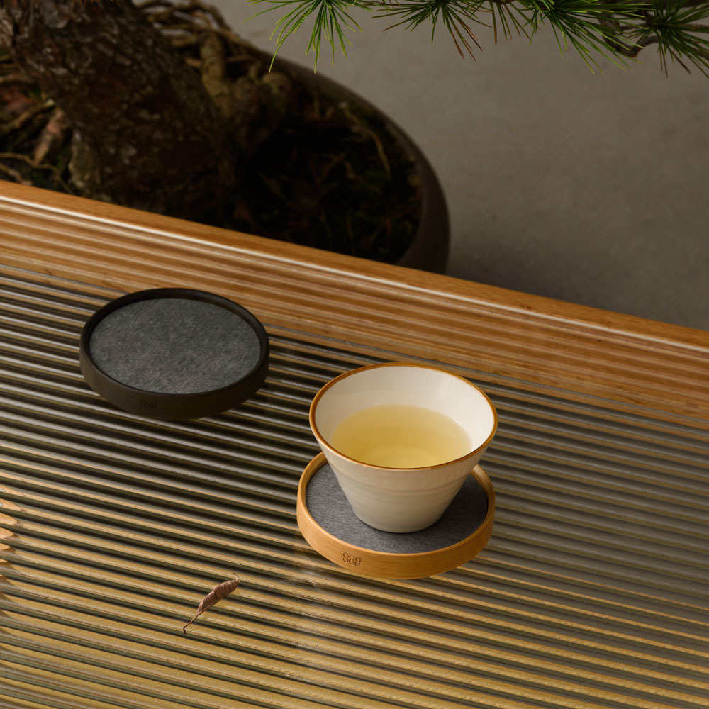 利用珪藻土能夠快速吸收水份的特性,加上圓形竹框的溫柔環繞,使得 TRIVI 杯墊簡約又有質感。