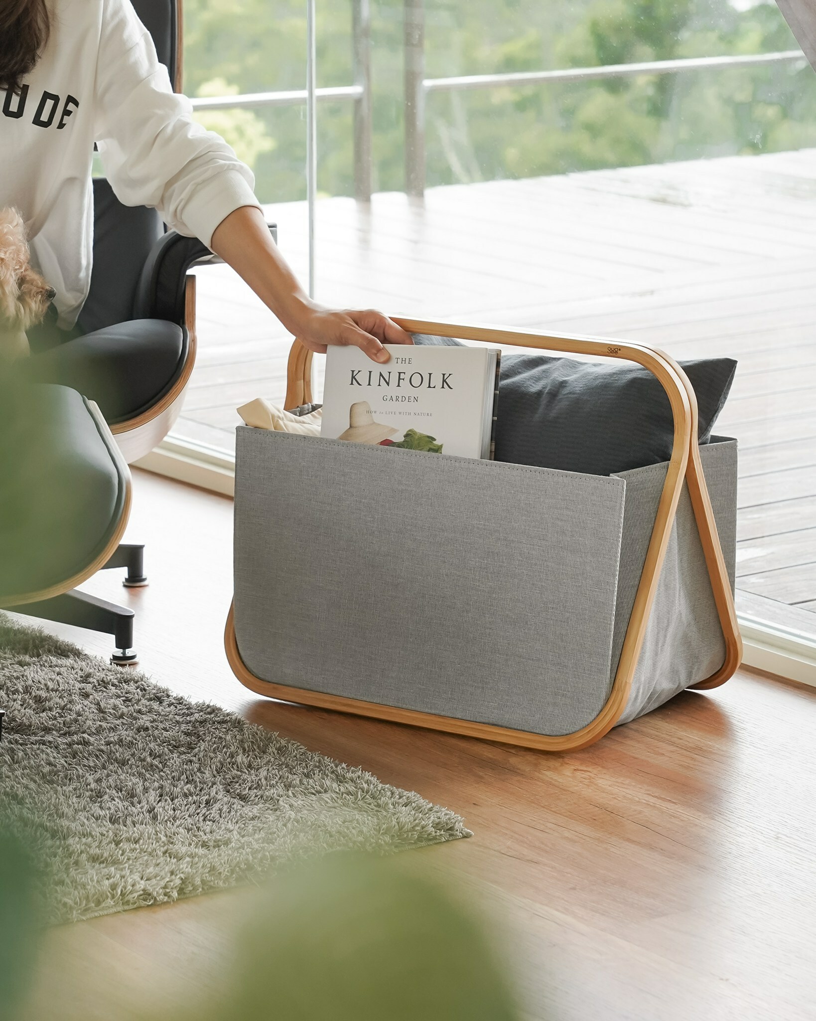 一系列竹布結合的收納用品 既實用又替家裡增添了溫馨的氛圍