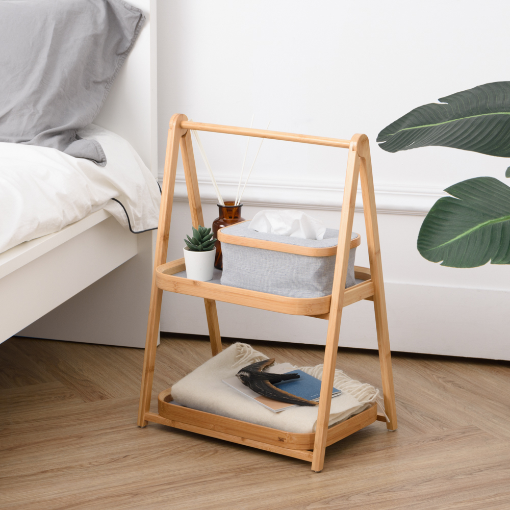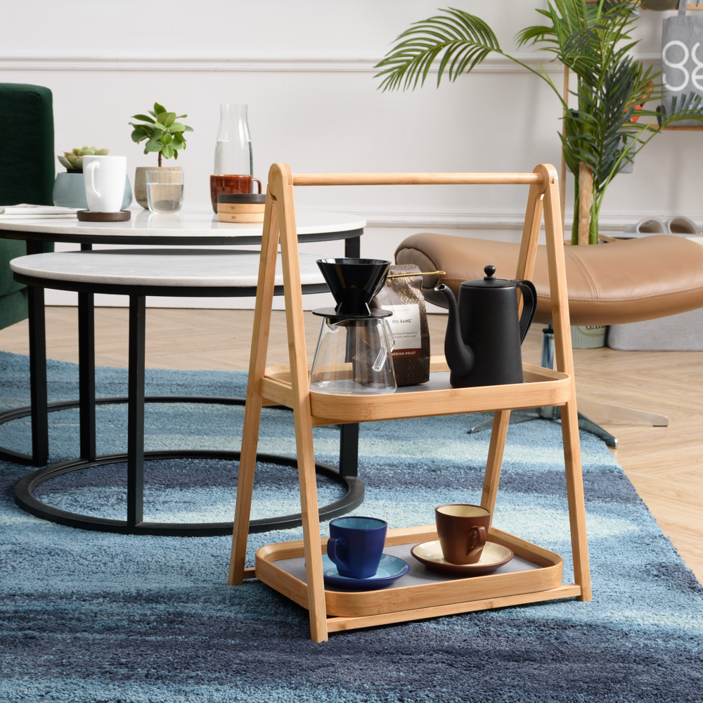另一款「ALFA 雙層置物架」能善用家裡空間 垂直可摺疊的設計 很適合放在客廳 浴室…擺放日常用品