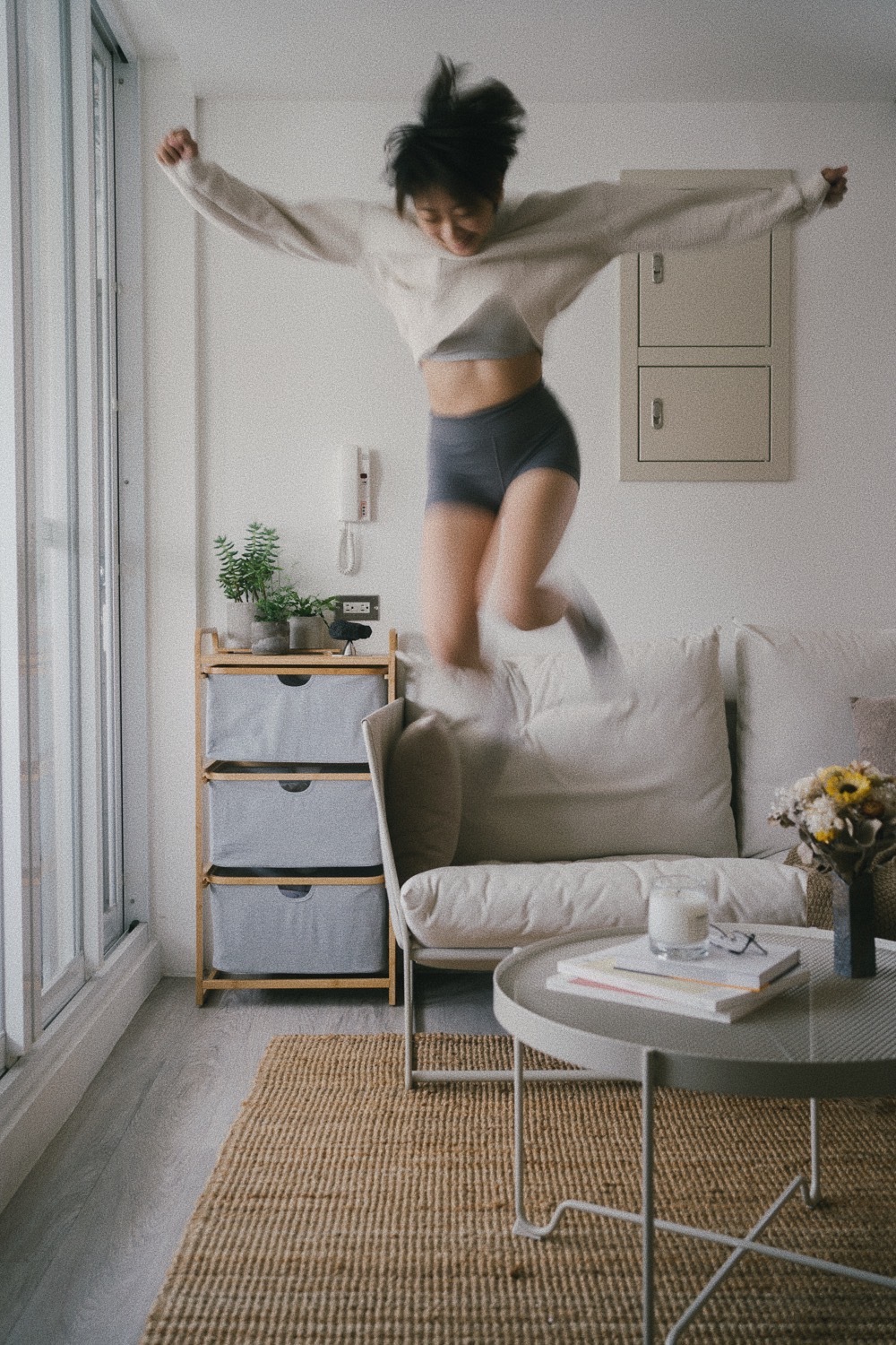 家裡最後的妝點是在 @gudeelife.tw 選的,天然竹材和棉布的搭配在全白的空間裡增加一點溫度,硅藻土杯墊和餐巾紙架這些小巧工具可以讓生活變得輕鬆,三層抽屜櫃剛剛好的塞進沙發與門的縫隙,是滿足摩羯座的某種偏執吧!