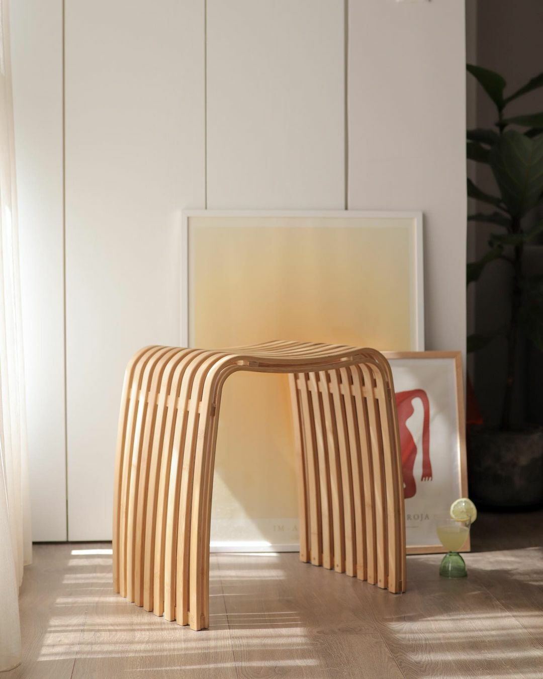 近期很常出現的這張 @gudeelife.tw 竹條弧形凳是我的最愛,不管是造型還是它天然紋路的細節都完全達到我的最高標準🤍 天氣好的時候我都會把它放在曬得到太陽的地方,它的弧度坐起來很舒服,可以在這待很久離開手機做一些自己喜歡的事