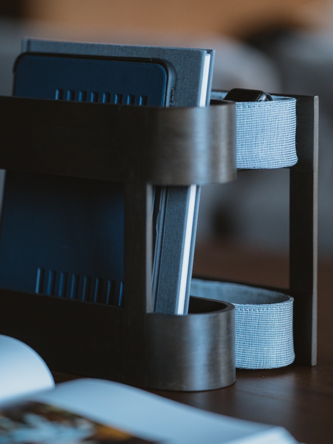 也放入最近正在閱讀的書籍,收納區放一些文具和體溫計等等,