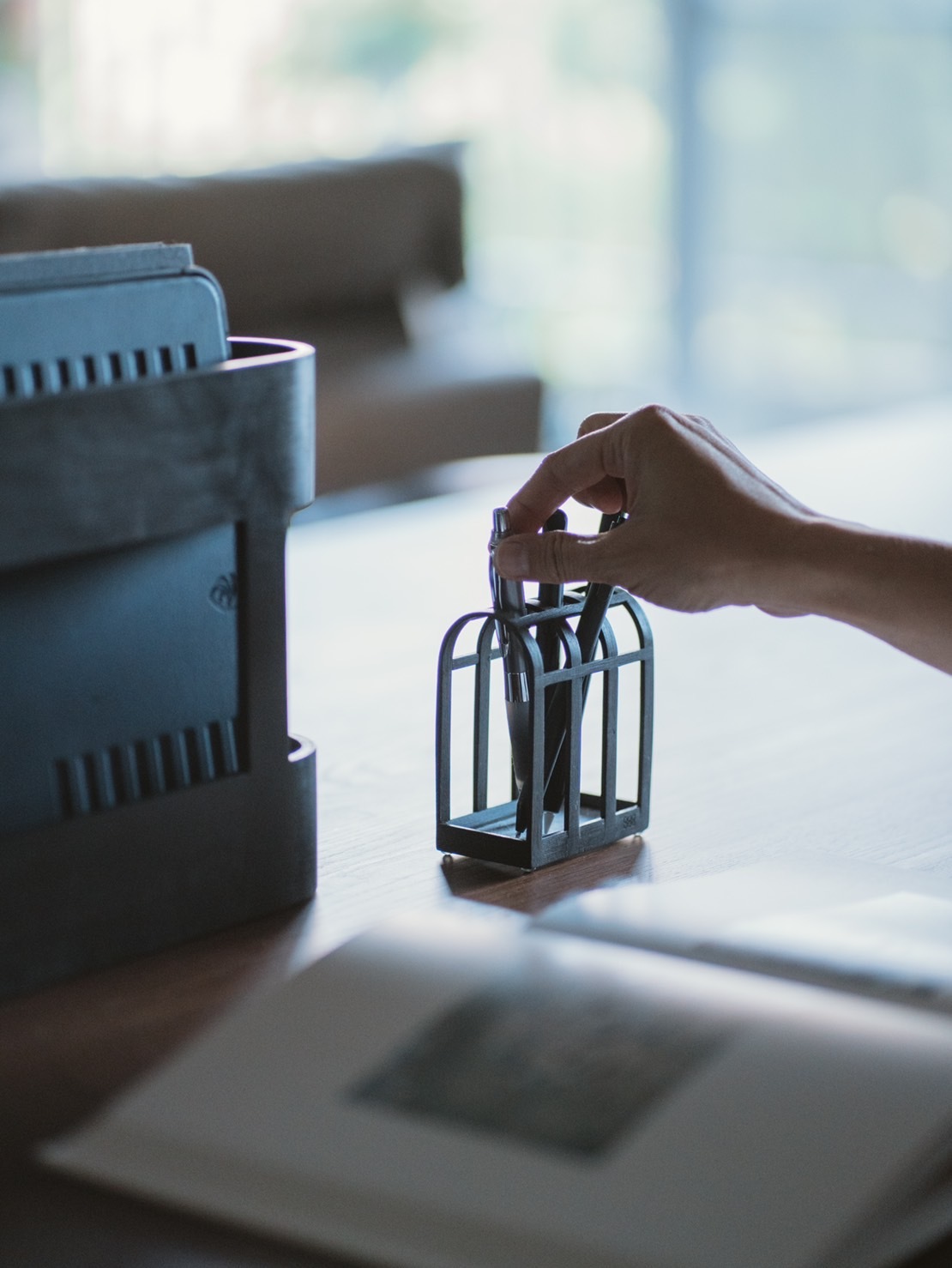 外型如格柵式拱門,上面有九個格子可以使用,我要什麼筆一目暸然!