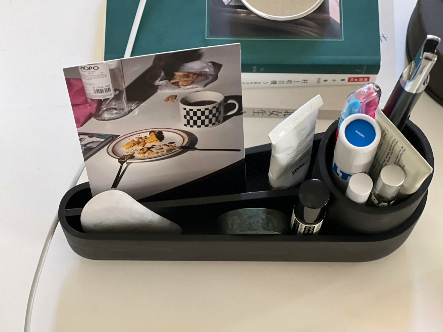 家裡不能有醜東西的我,又要來推薦大家最近好愛的收納擺飾,一體成型的設計,直接收納了那些難以聚集在一起的文房具們,筆、點火器、護手霜、指緣油以及明信片等等,平時出國也喜歡收集各種印刷物的話,直接擺上去都好看到不行,在咖啡廳買的明信片終於有一處可以展示。
