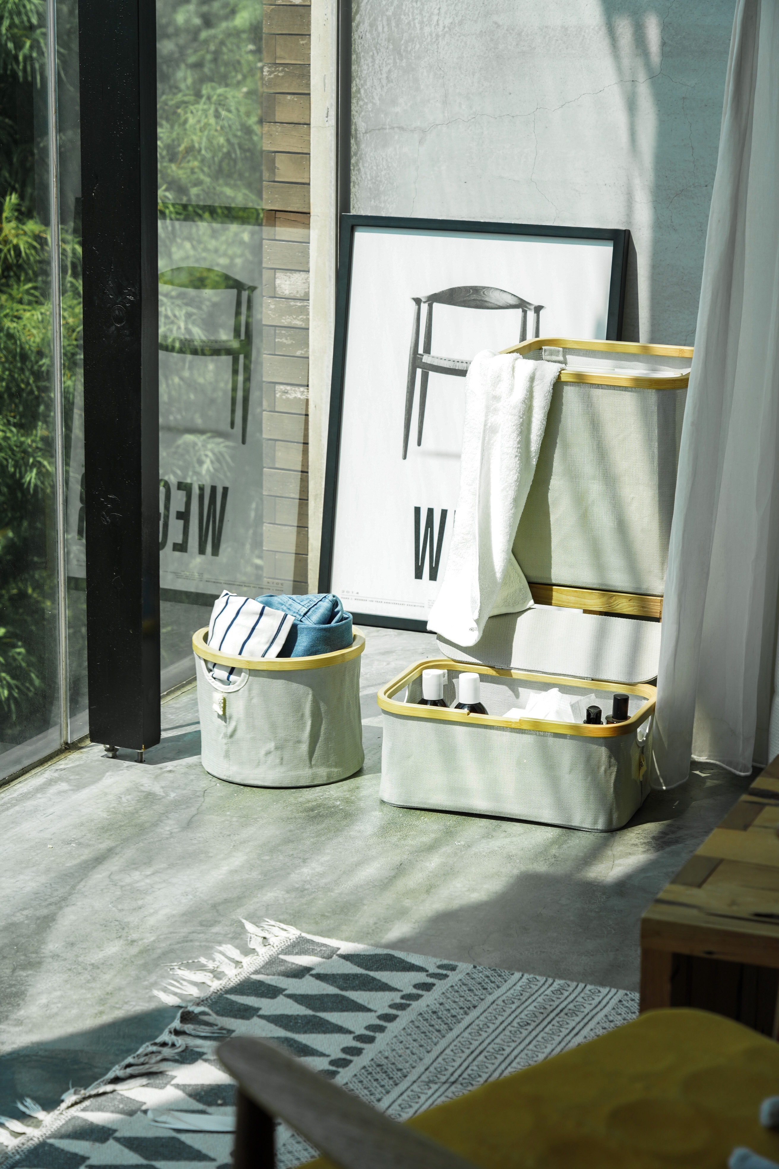 我個人選了FRASA(正方形、圓形)還有AKORE (加蓋款) 這系列的收納籃融入了生活的居家美學,透過原竹色的毛竹搭配莫蘭迪綠布料,打造出清新日系的質感極簡風,無論是擺在家裡的哪個位置都很耐看!