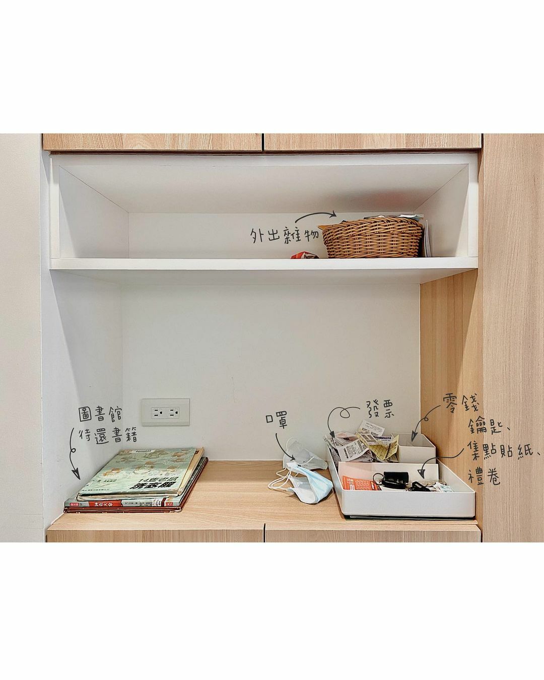 原本的玄關處採開放式收納,雖然東西不多但還是感到凌亂,尤其是發票(還沒全面電子化),