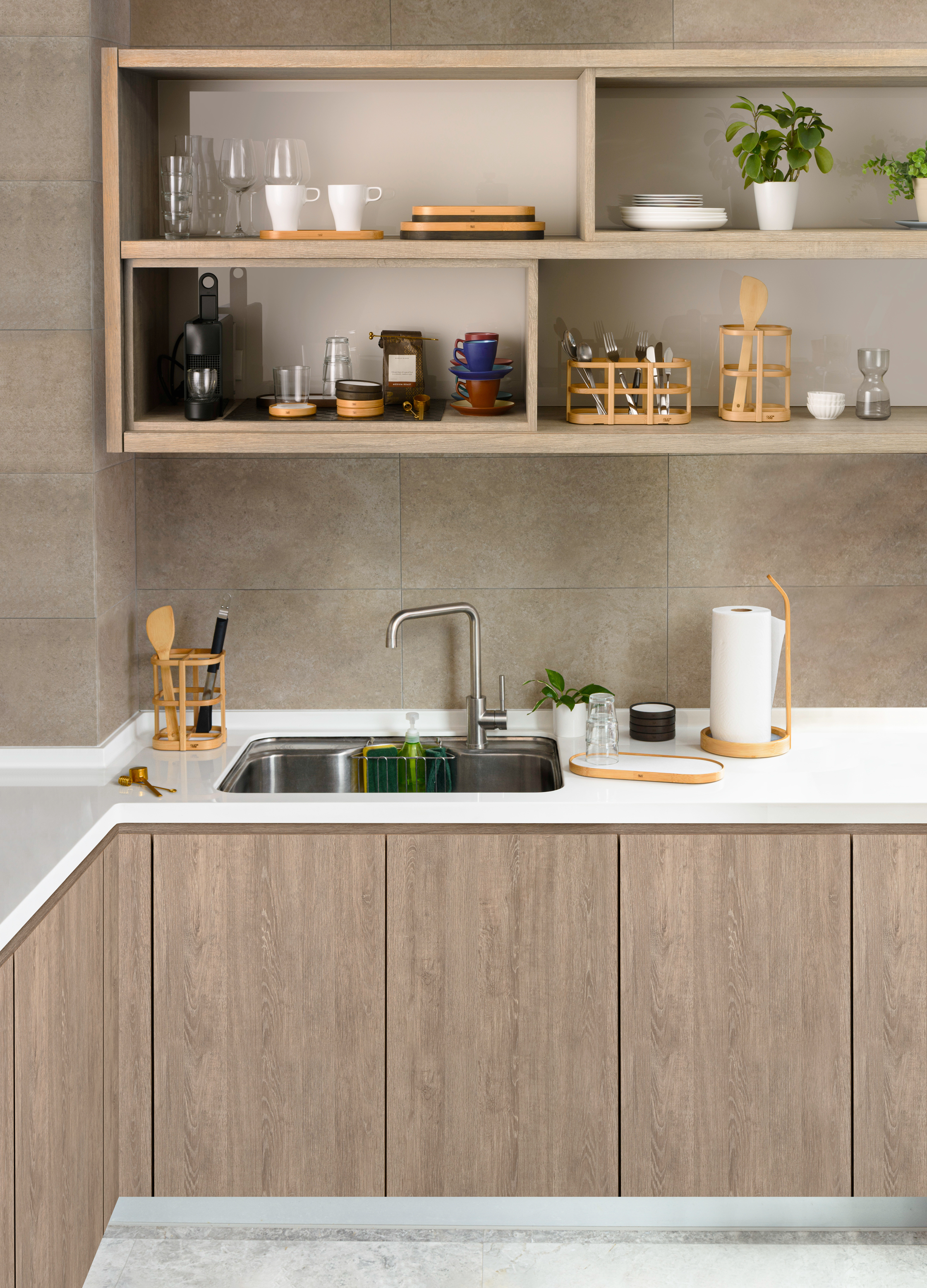 這次規劃簡約小型的廚房佈置!在有限的空間裡,每一個位置擺放的物品都經過仔細思考,替自己量身打造出最貼心便利的廚房空間。