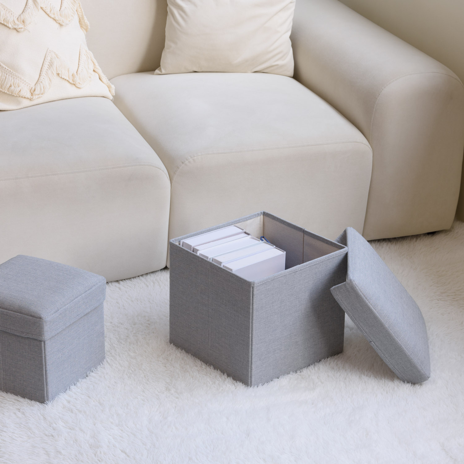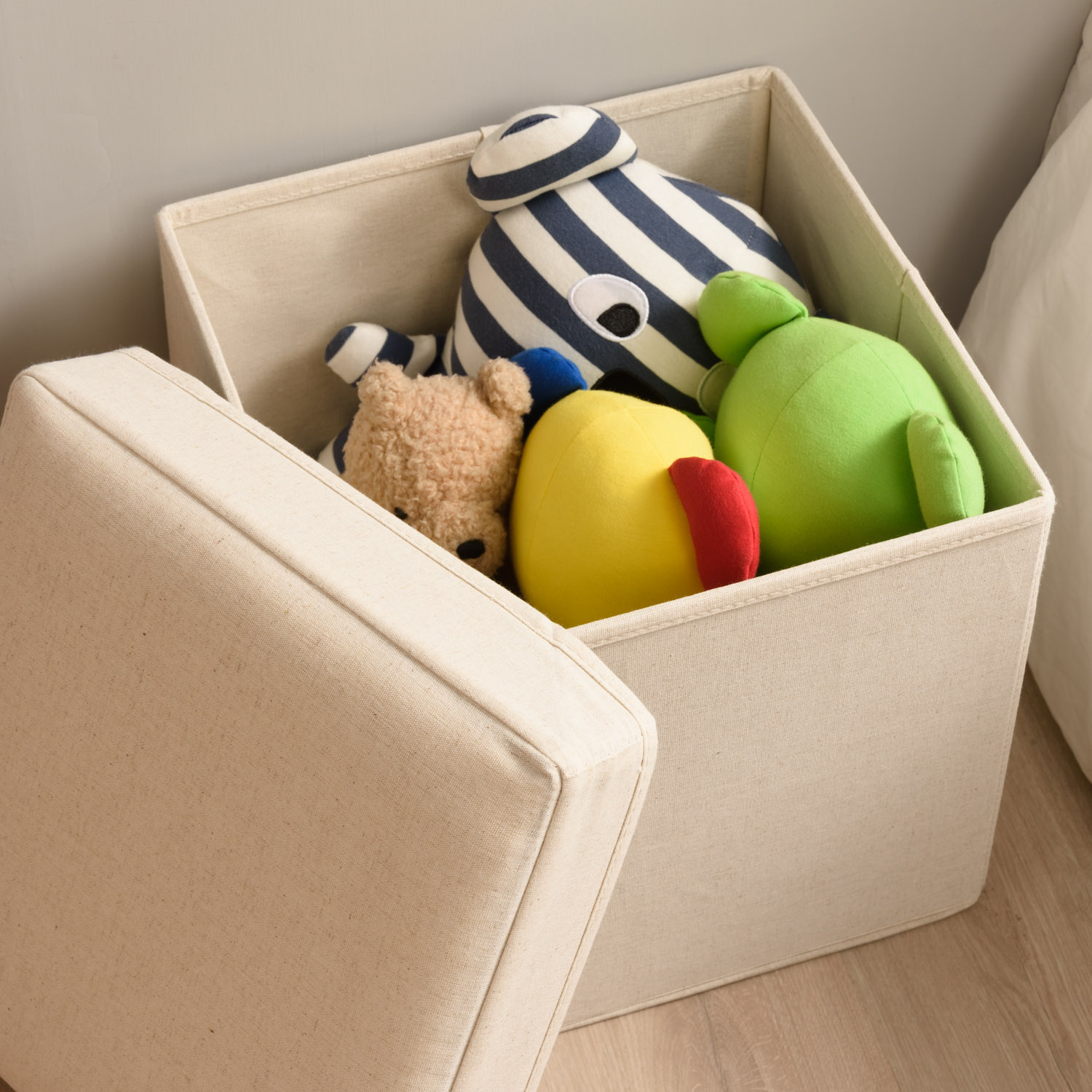 ALFIO 收納椅凳擁有大且方正的儲物空間,可以收納書本、玩具、日常用品等等,上蓋使用柔軟的海棉填充,坐起來非常舒適。一舉兩得的設計非常適合擺放在客廳、臥室等空間。