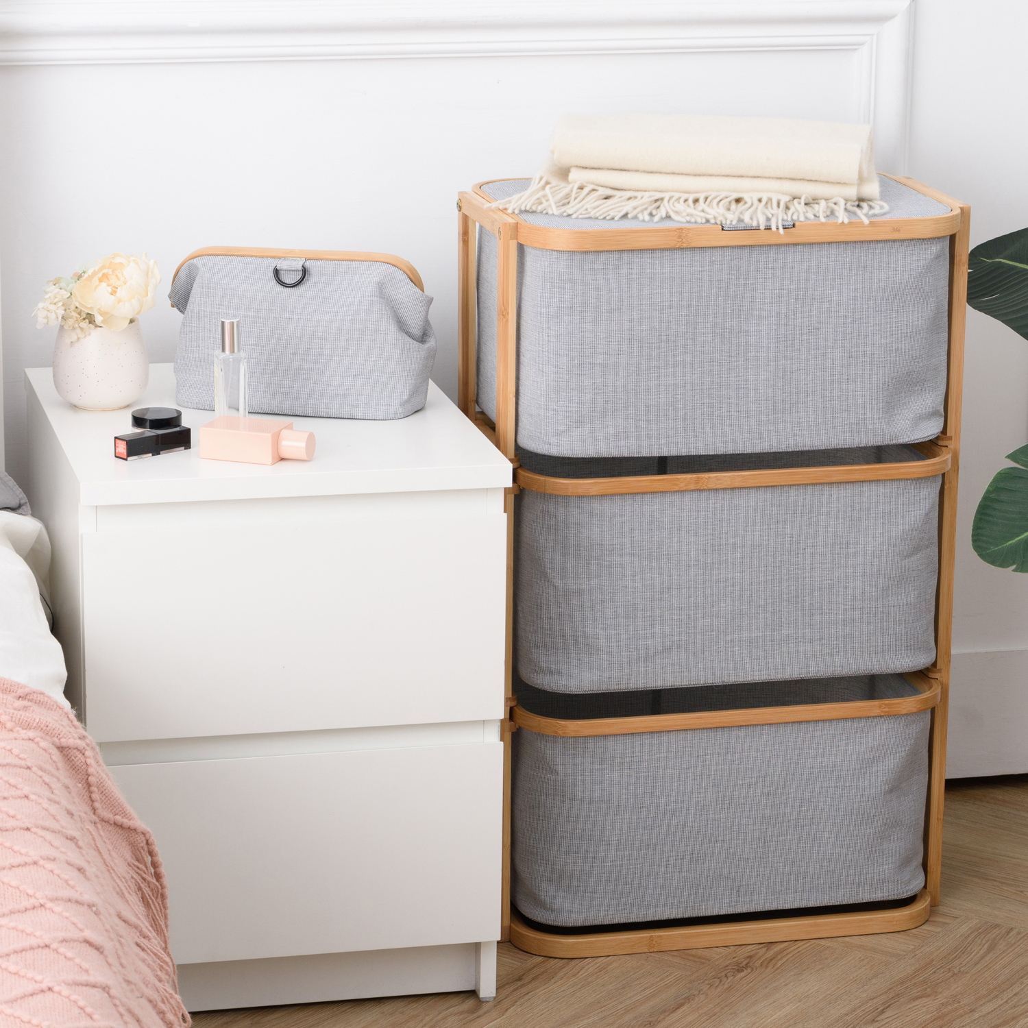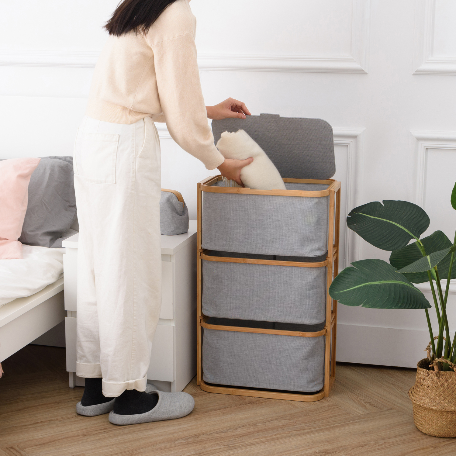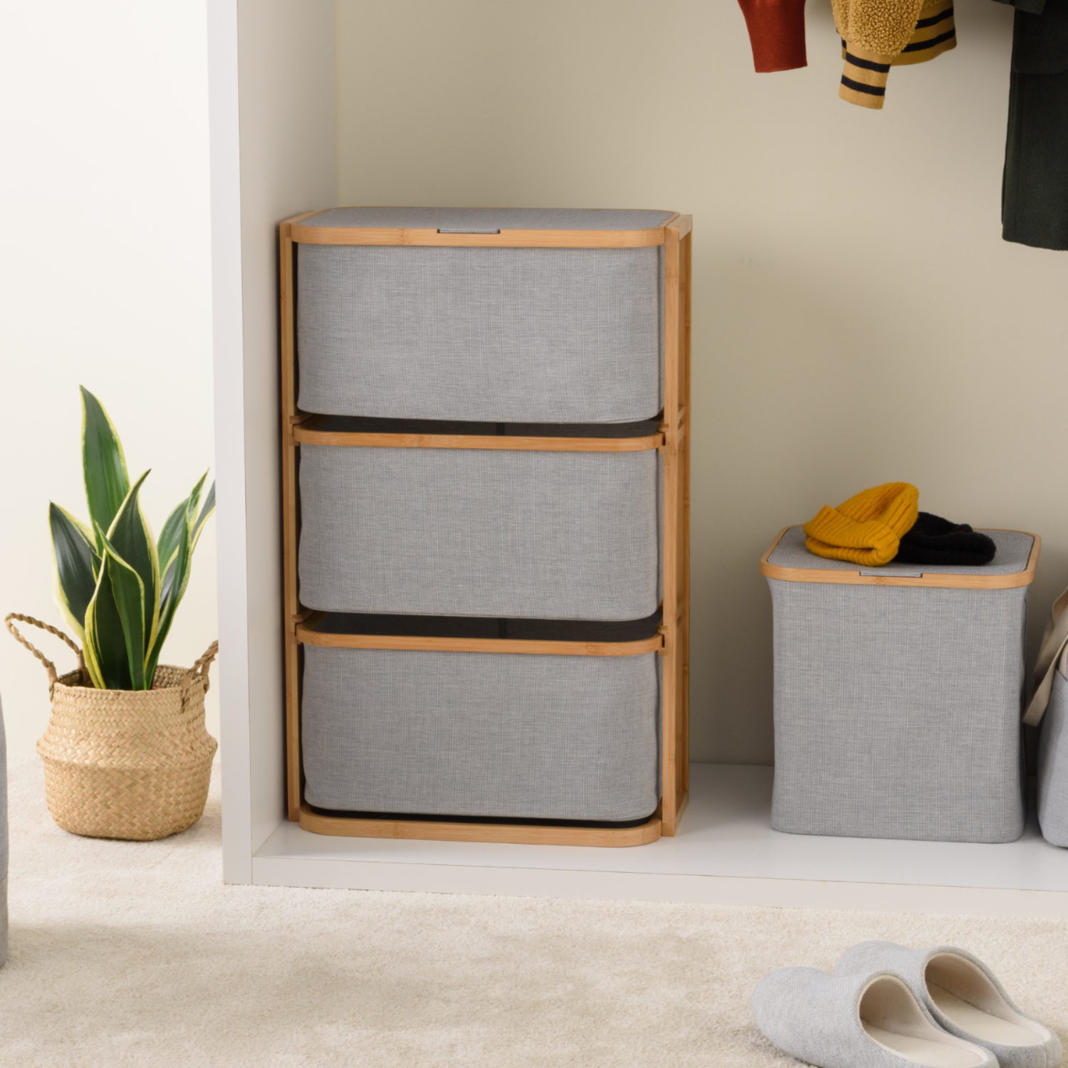 簡易的三層收納櫃是臥室、客廳、任何居家空間的好幫手,掀起上方防塵布蓋,有獨立空間可存放物品,下方更有兩個便利的抽屜可使用,增添更多收納空間。