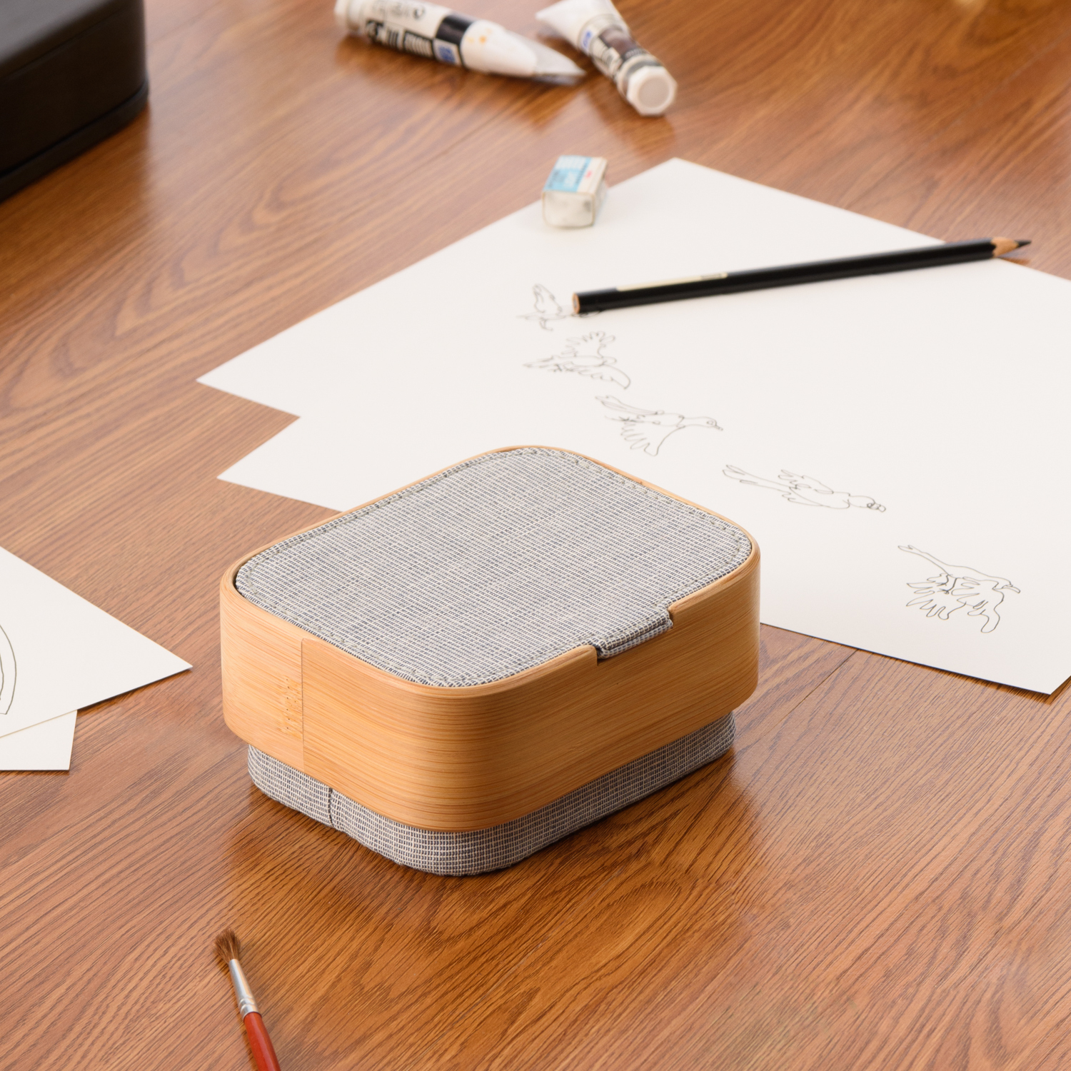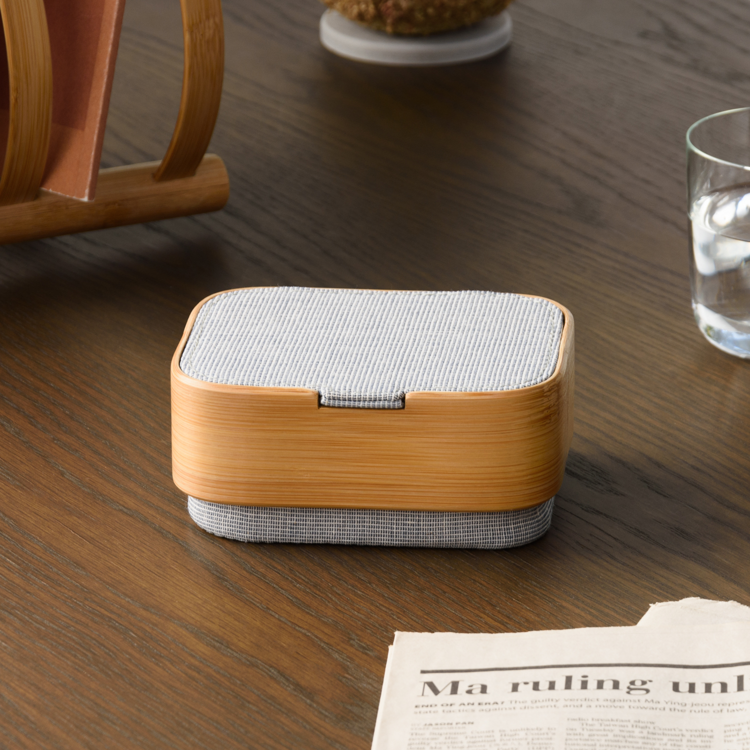 材質: 竹、亞麻藍布 (聚酯纖維、棉、上蓋內側PE塗層)