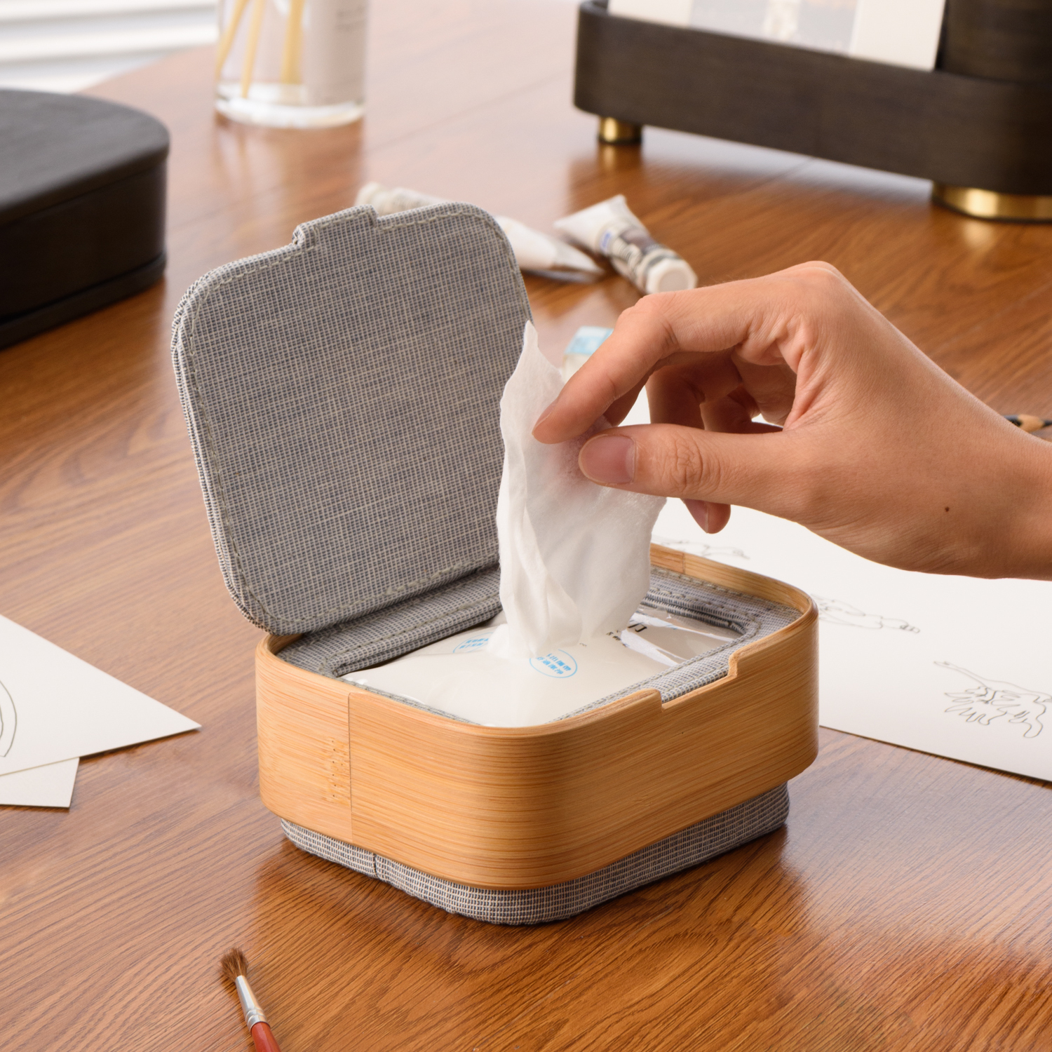 除了收納濕紙巾外,也可以用來收納居家小物如棉花棒、牙籤、化妝棉…等等,讓空間變得整齊又美觀。
