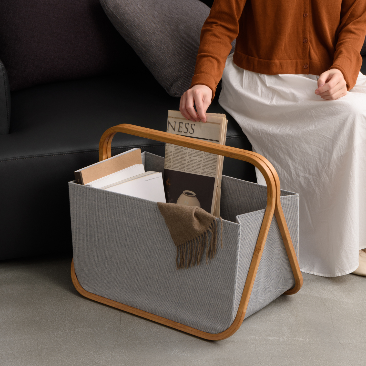 優雅收納提籃,大容量可收納雜誌、玩具、毛毯…等等家居用品。 適合擺放於客廳、臥室等空間,獨特亮眼的外型也能作為居家佈置的一部分。