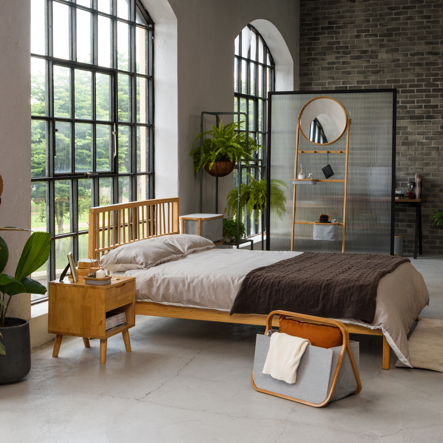 材質: 竹、亞麻藍布(聚酯纖維、棉)