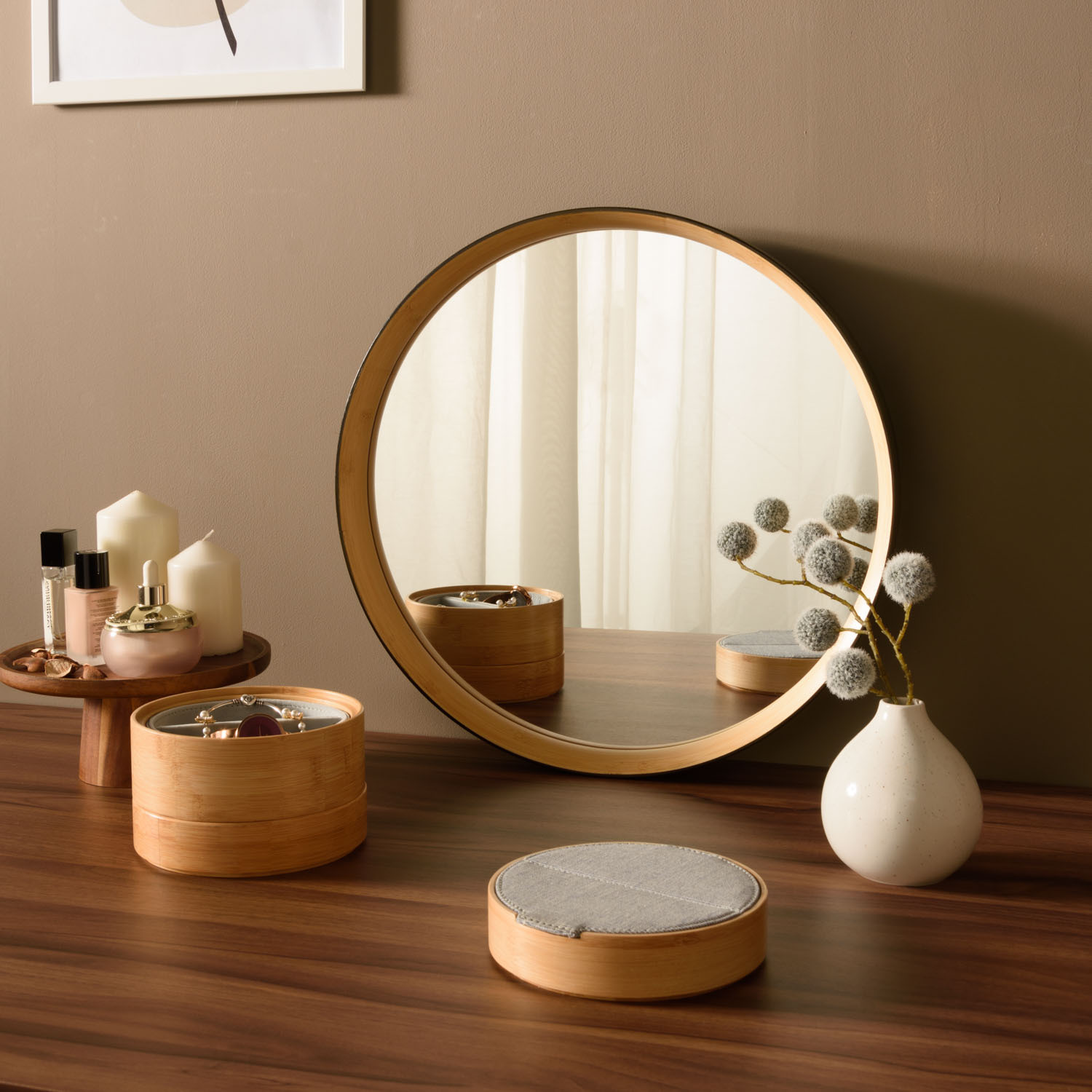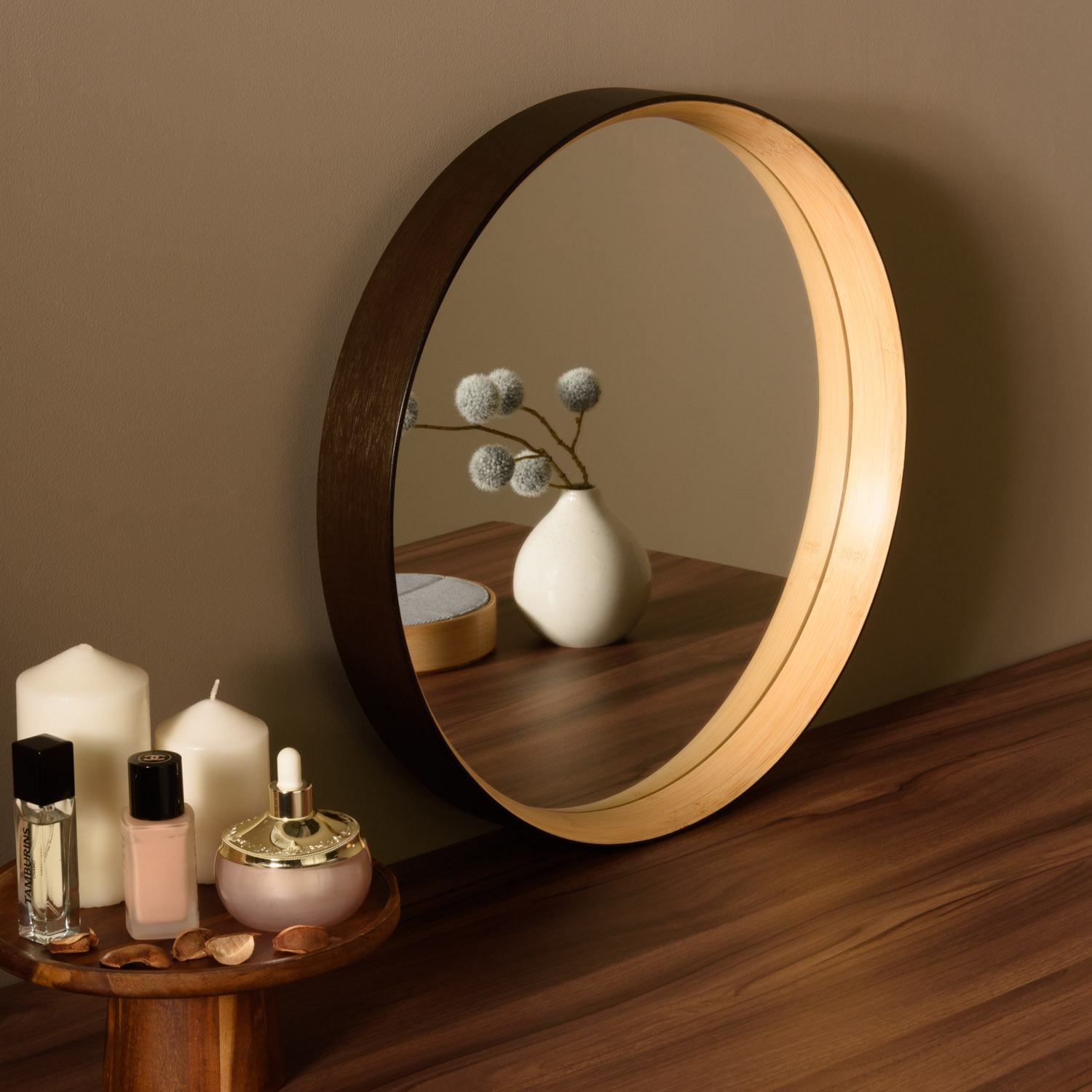 擁有卓越質感的竹圓掛鏡,重新聚焦於工藝的細節處理,將自然竹紋的魅力透過圓鏡演繹,展現設計賦予生活的美好氛圍。